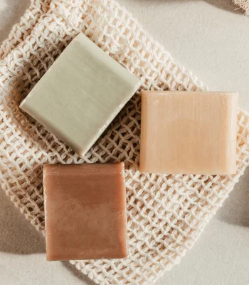 A handcrafted soap made entirely from organic oils. To add color, mineral clays create a body cleanser that blends perfectly with nature.