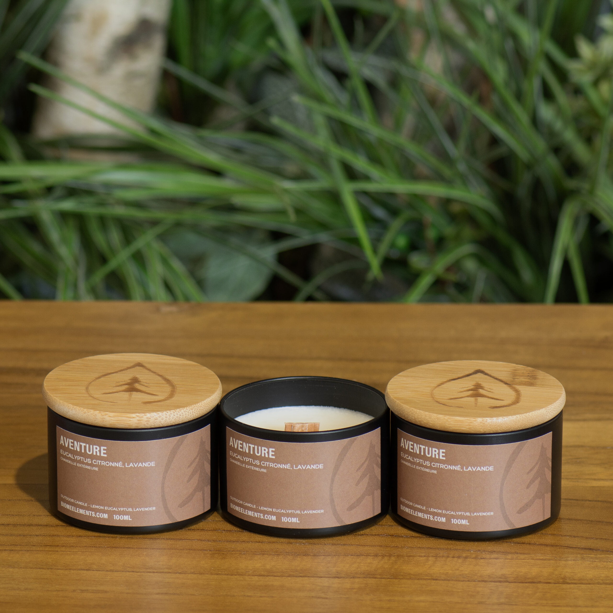 Découvrez le Trio Aventure incluant 3 bougies aux huiles essentielles d’eucalyptus citronné, géranium et lavande. Chandelles extérieures anti-moustiques.